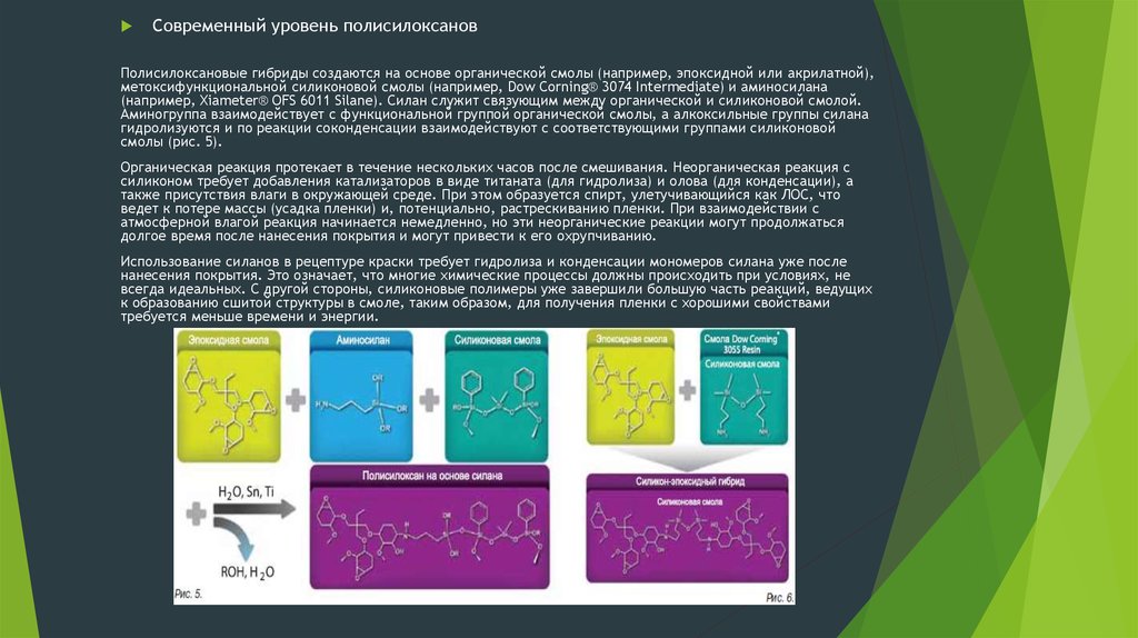 Современный уровень полисилоксановПолисилоксановые гибриды создаются на основе органической смолы (например, эпоксидной или акрилатной),