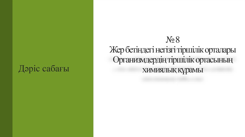 1. № 8 Жер бетіндегі негізгі тіршілік орталары Организмдердің тіршілік ортасының химиялық құрамы