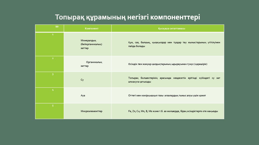 • Топырақ түзілу процесінің факторларына сипаттамв