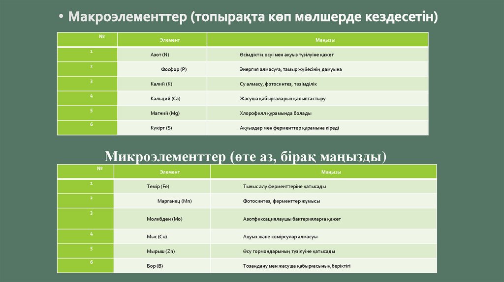 Микроэлементтер (өте аз, бірақ маңызды)