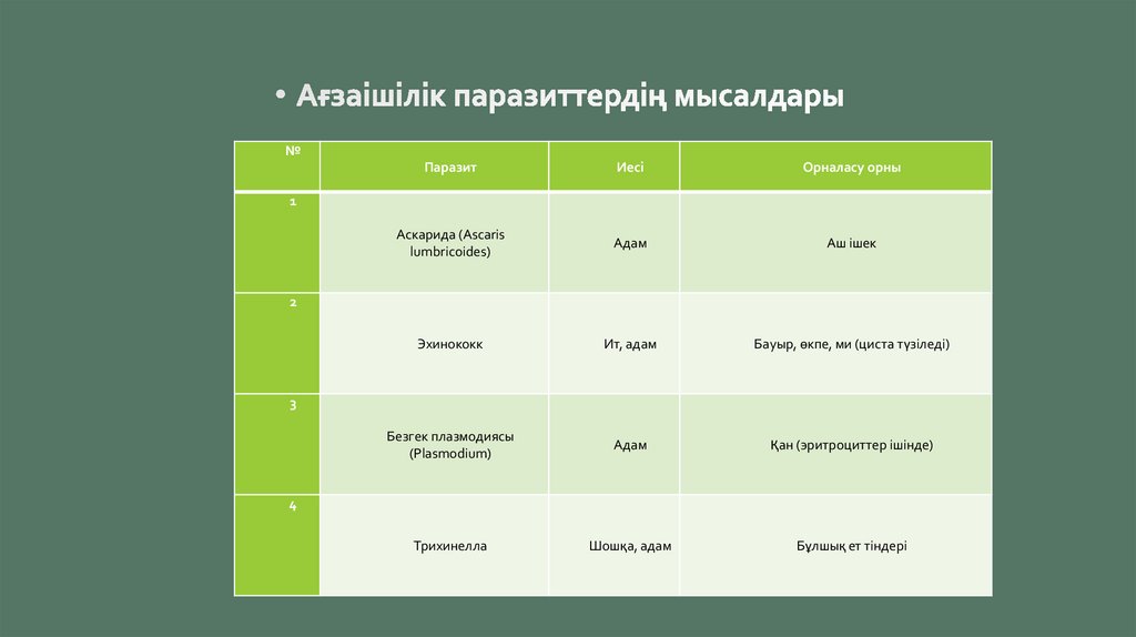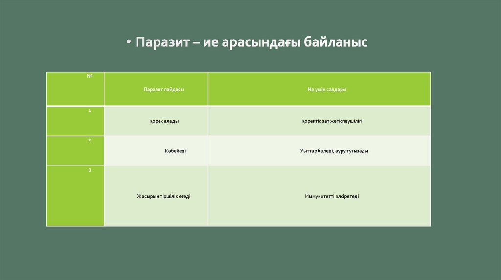 вирустар және т.б.). Иесі мен паразиттер арасында