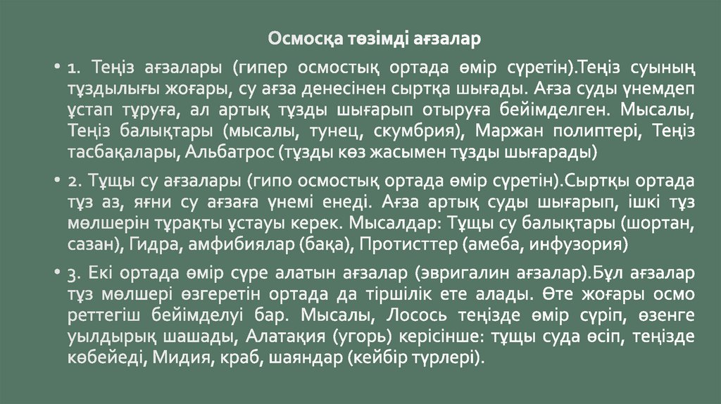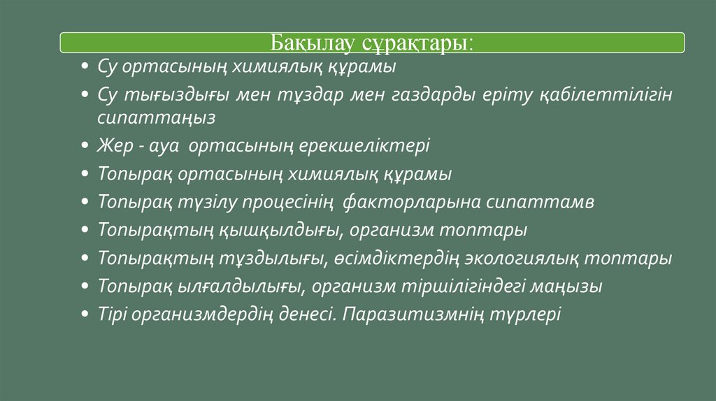 Бақылау сұрақтары:• Су ортасының химиялық құрамы