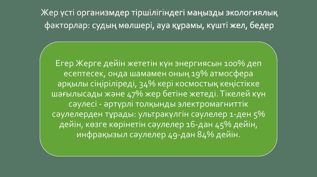 • Жер - ауа ортасының ерекшеліктері