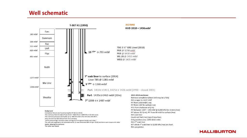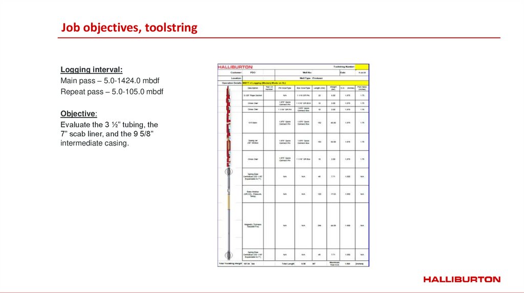 The recorded MBTT data has good quality. Correlation was done based on the open hole gamma ray provided by the client. All depths are in mbdf.