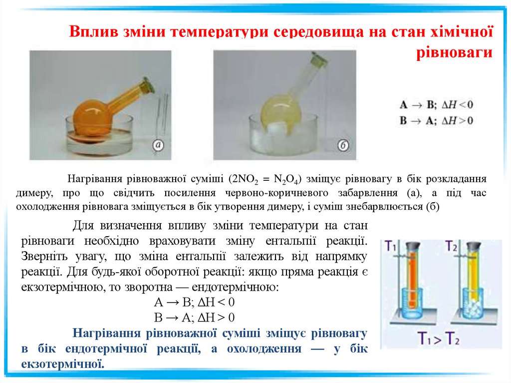 Вплив зміни температури середовища на стан хімічноїрівноваги