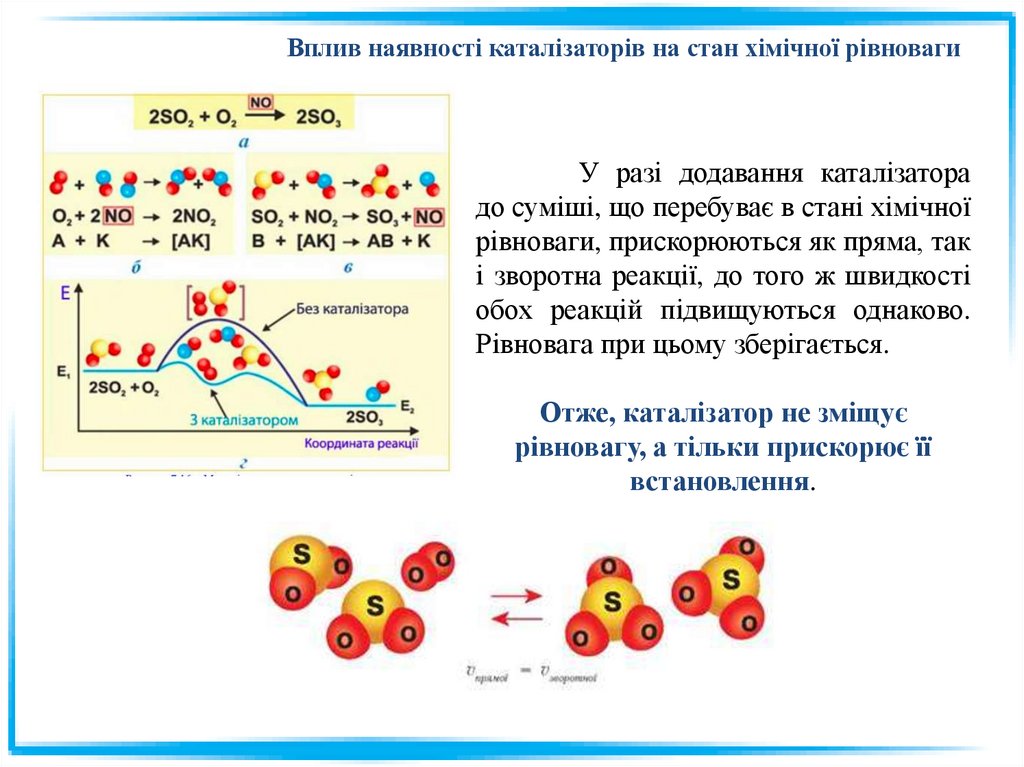 Вплив наявності каталізаторів на стан хімічної рівновагиУ разі додавання каталізатора