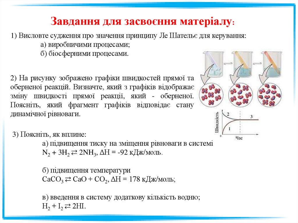 Завдання для засвоєння матеріалу:1) Висловте судження про значення принципу Ле Шательє для керування: