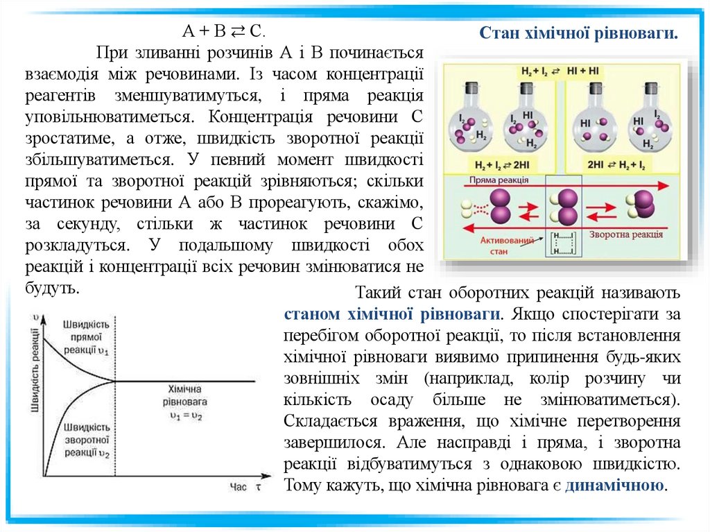 систем). Проте через певний час швидкості прямої і зворотної реакцій зрівнюються і