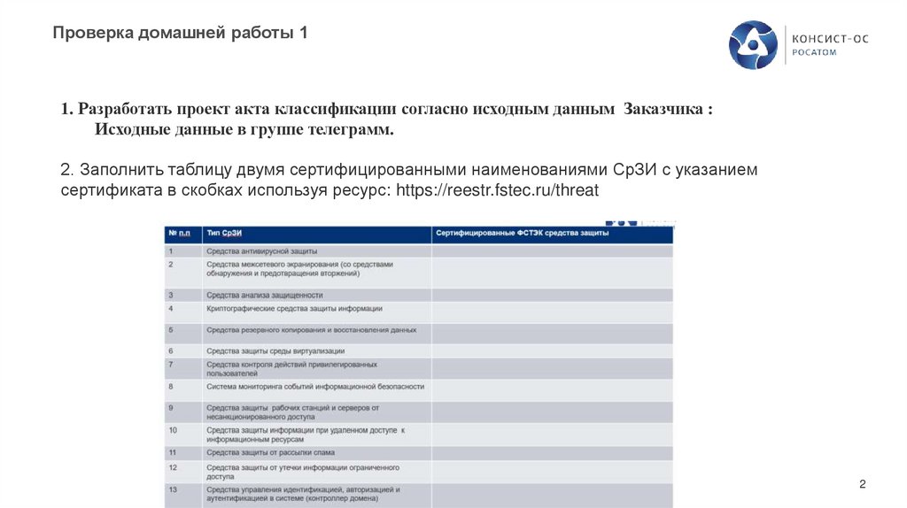 2. Заполнить таблицу двумя сертифицированными наименованиями СрЗИ с указанием