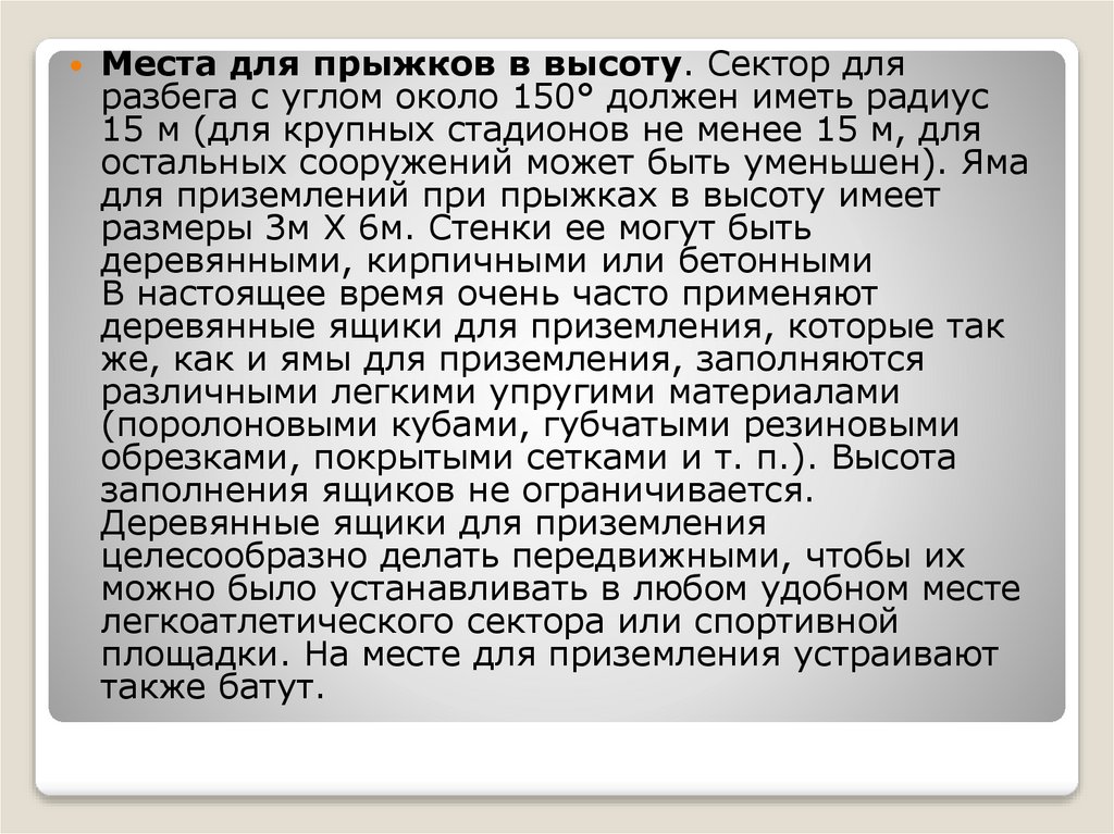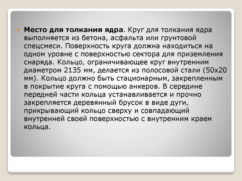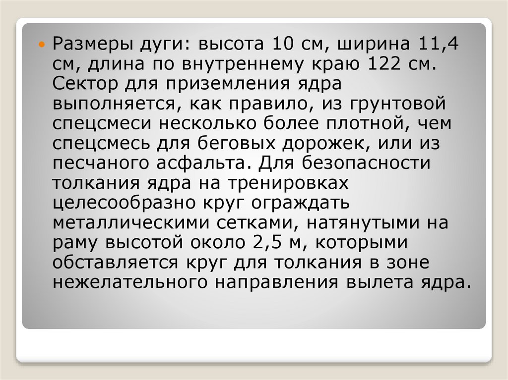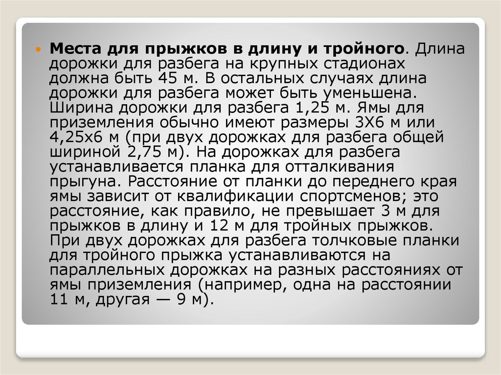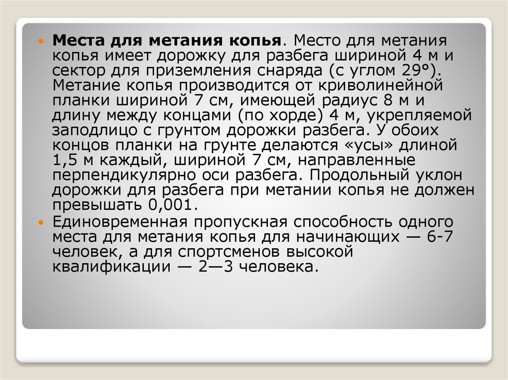 Места для метания копья. Место для метаниякопья имеет дорожку для разбега шириной 4 м и