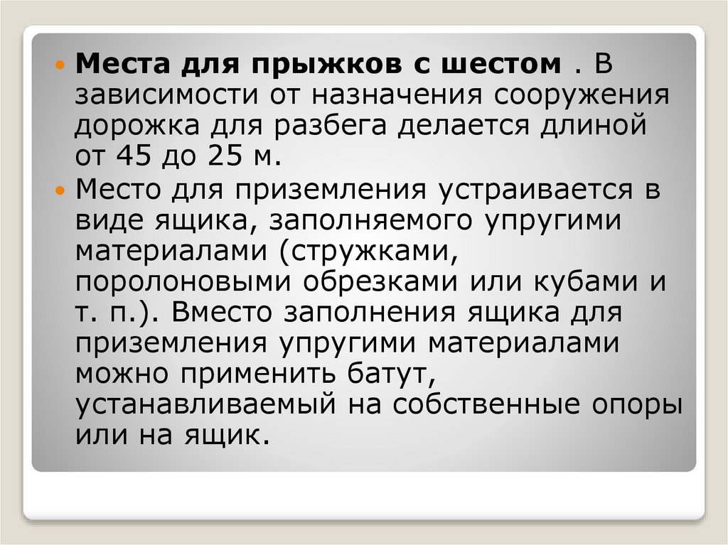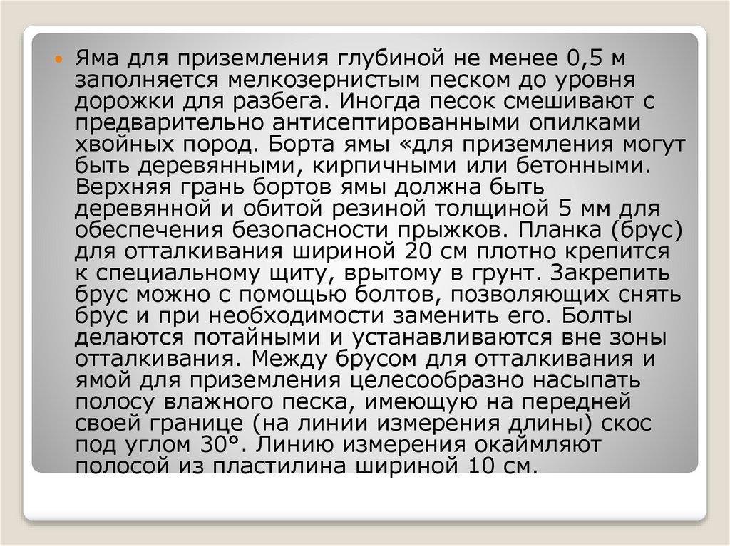 Ширина дорожки для разбега 1,25 м. Ямы для