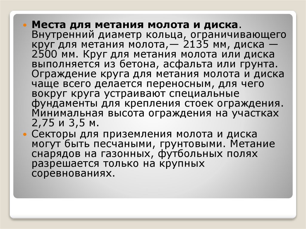 Места для метания молота и диска.Внутренний диаметр кольца, ограничивающего