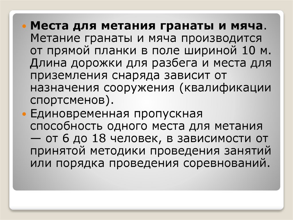 Места для метания гранаты и мяча.Метание гранаты и мяча производится