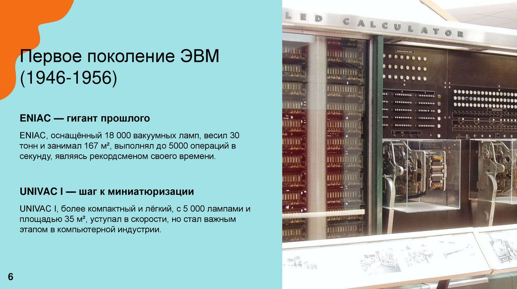 ENIAC, оснащённый 18 000 вакуумных ламп, весил 30