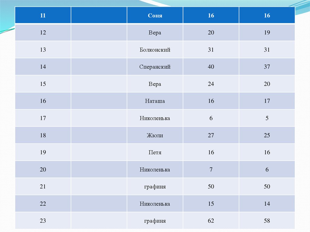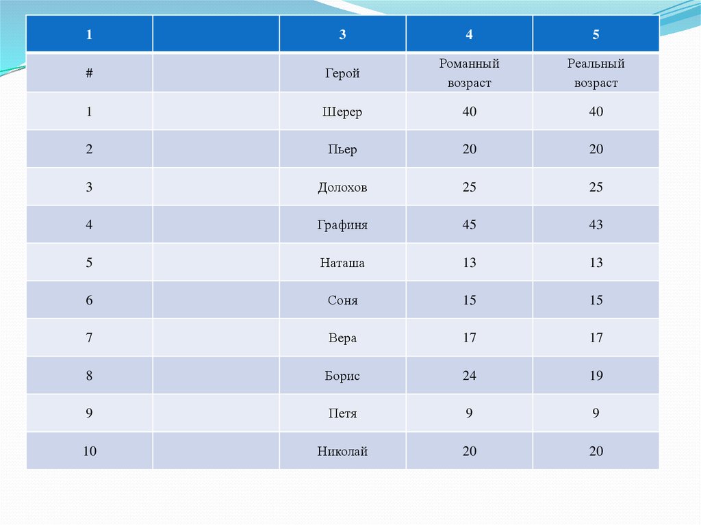 Сравнение реального и романного возраста героев Л.Н. Толстого «Война и мир»