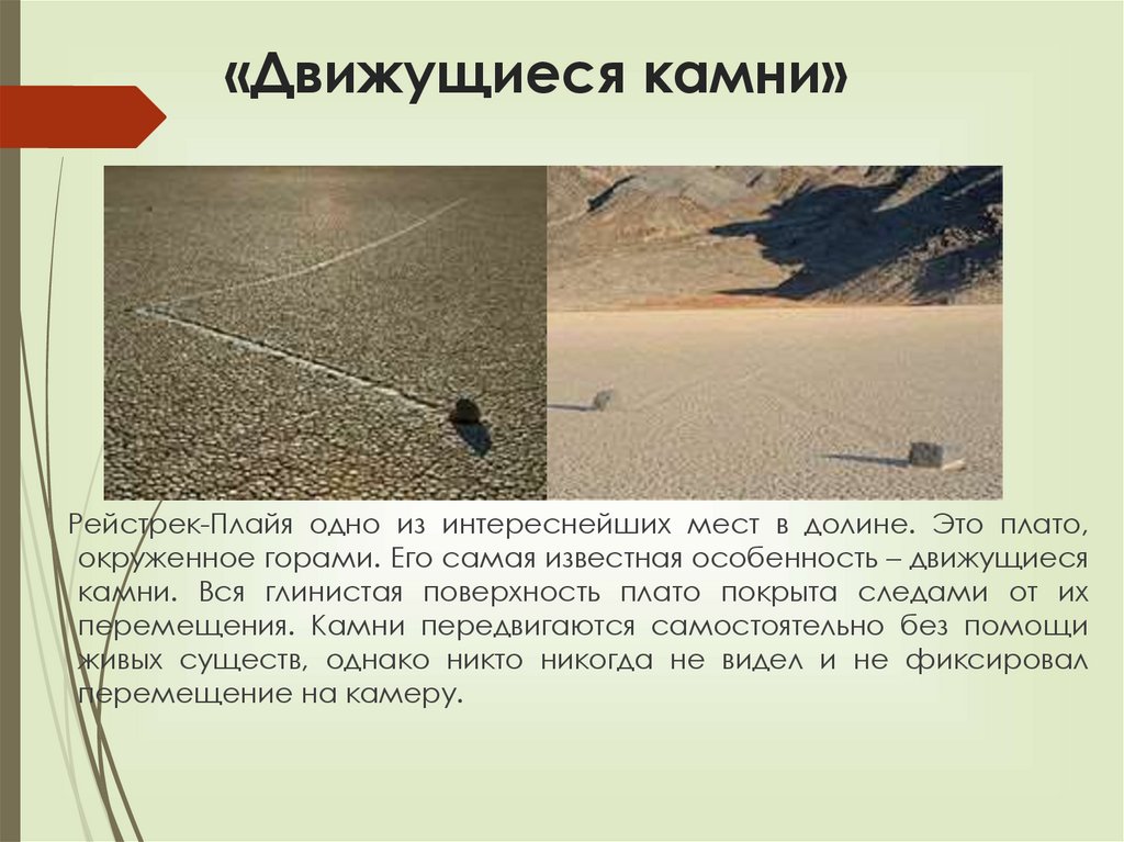 «Движущиеся камни»Рейстрек-Плайя одно из интереснейших мест в долине. Это плато,