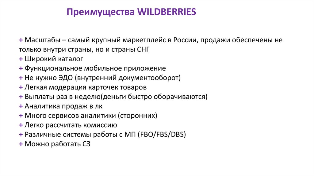 Преимущества WILDBERRIES+ Масштабы – самый крупный маркетплейс в России, продажи обеспечены не