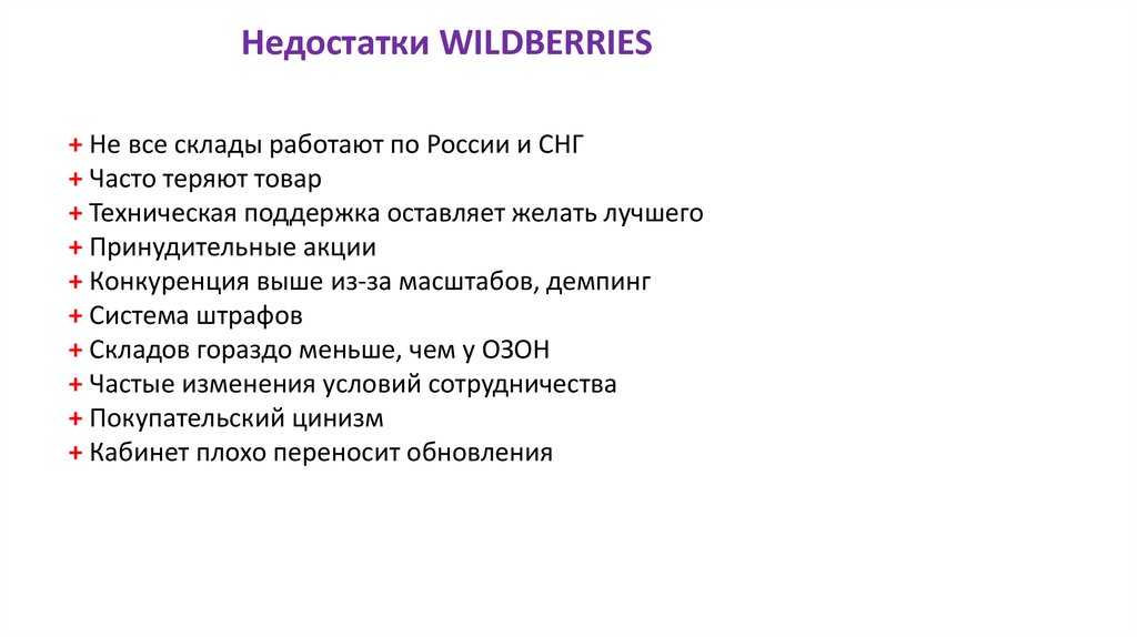 Недостатки WILDBERRIES+ Не все склады работают по России и СНГ