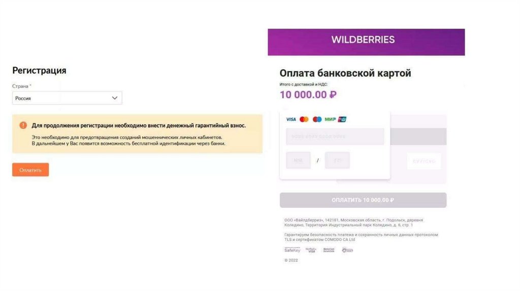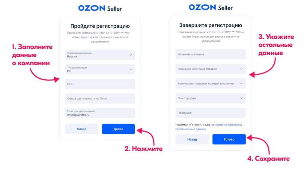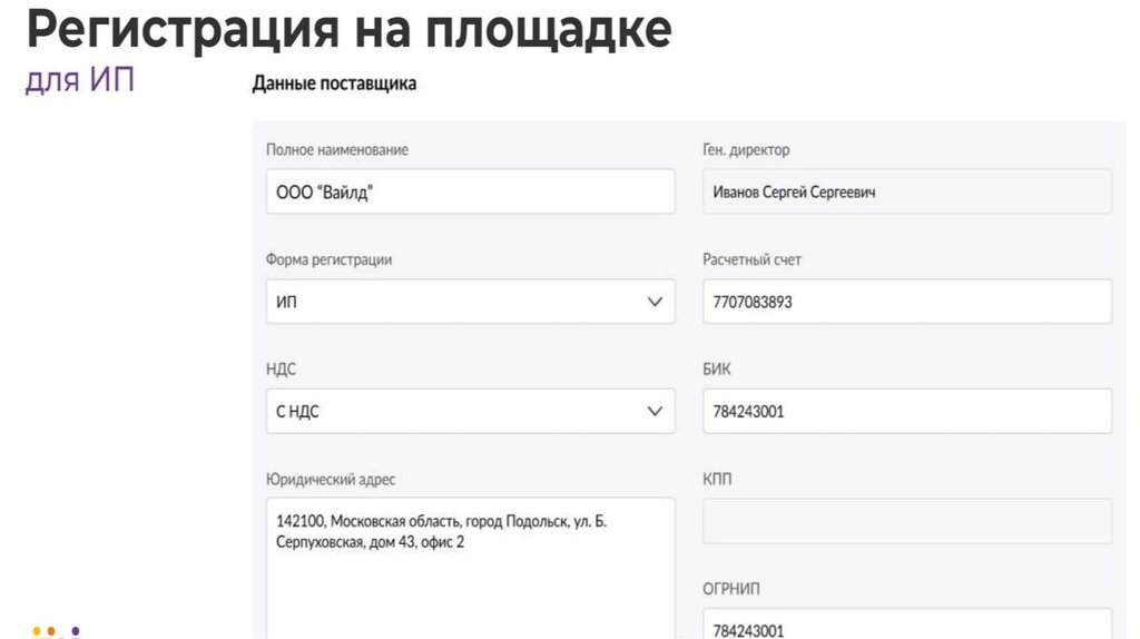 * Регистрация компании/продавца на маркетплейсе с учётом