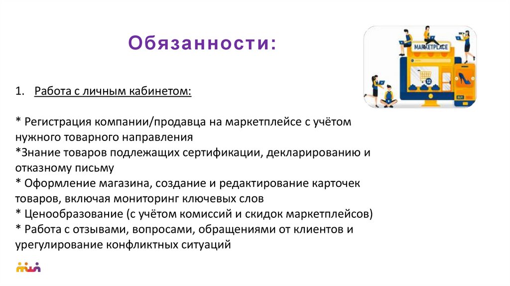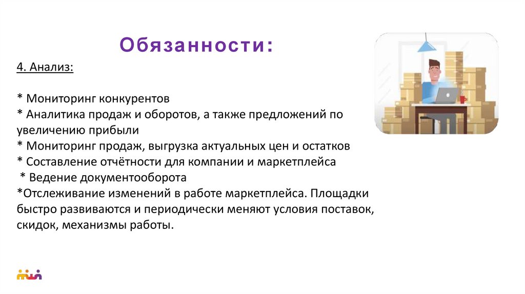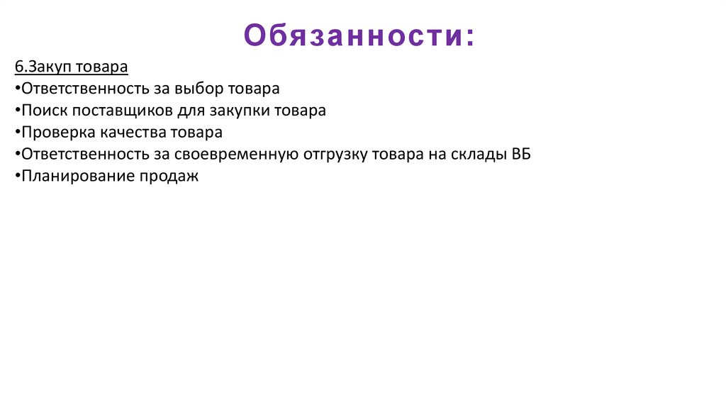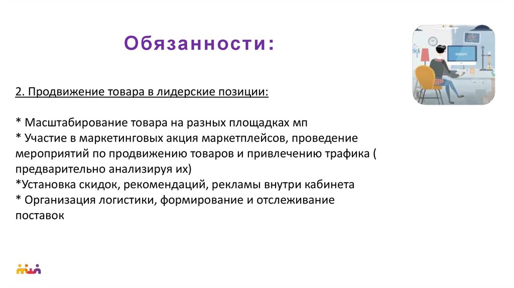 Обязанности:2. Продвижение товара в лидерские позиции: