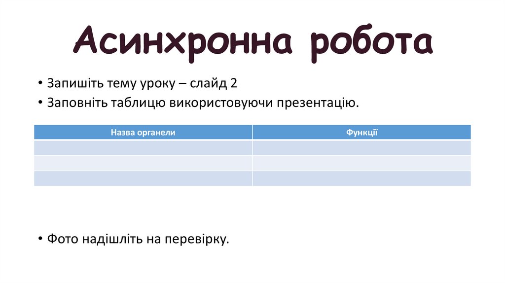 • Запишіть тему уроку – слайд 2• Заповніть таблицю використовуючи презентацію.
