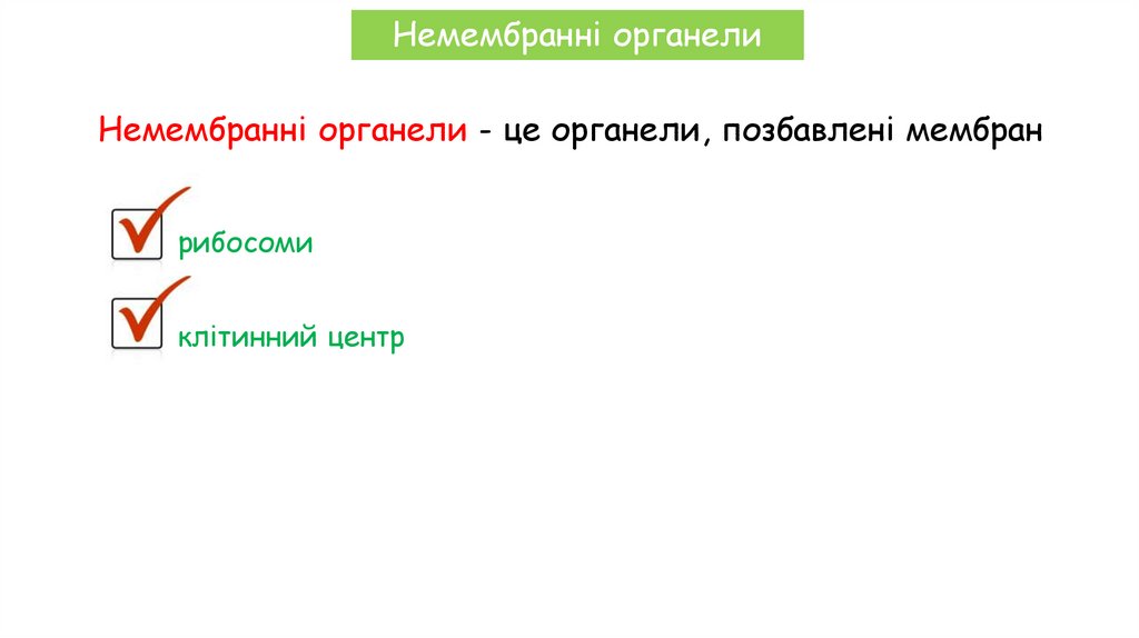 Немембранні органелиНемембранні органели - це органели, позбавлені мембран