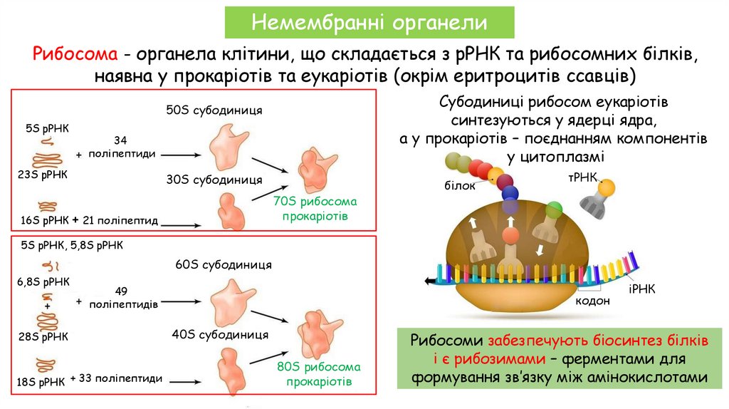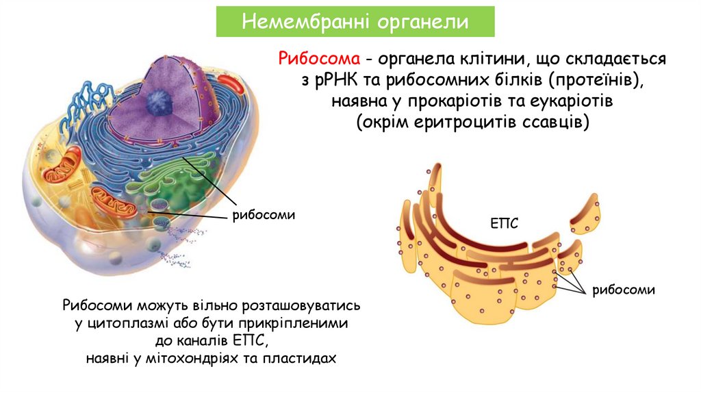 Немембранні органелиРибосома - органела клітини, що складається з рРНК та рибосомних білків,