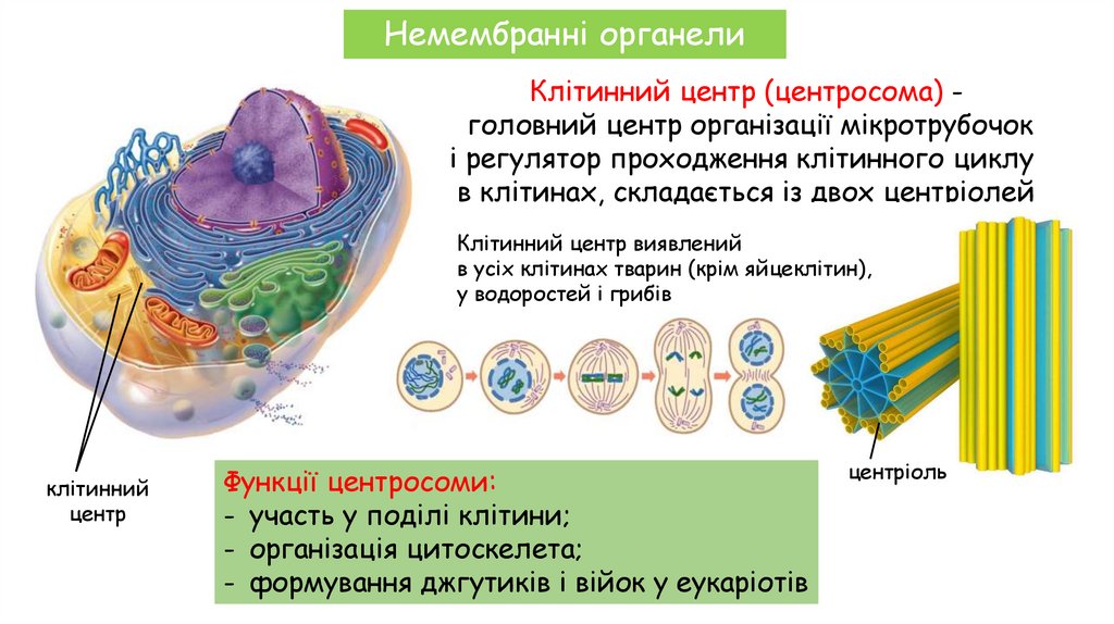 Немембранні органелиКлітинний центр (центросома) головний центр організації мікротрубочок