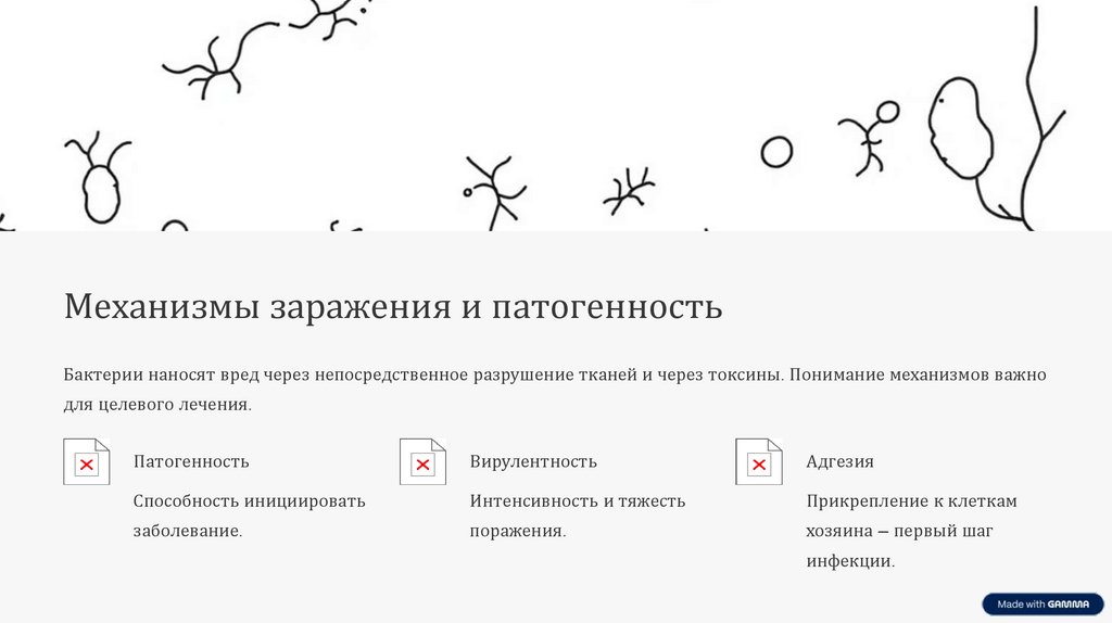 Механизмы заражения и патогенностьБактерии наносят вред через непосредственное разрушение тканей и через токсины. Понимание механизмов важно