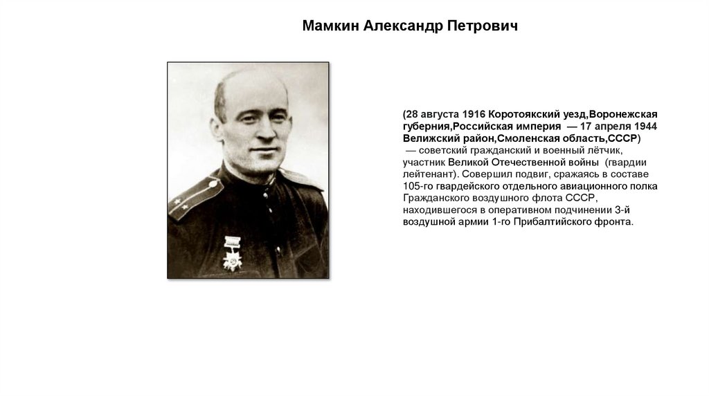Мамкин Александр Петрович(28 августа 1916 Коротоякский уезд,Воронежская