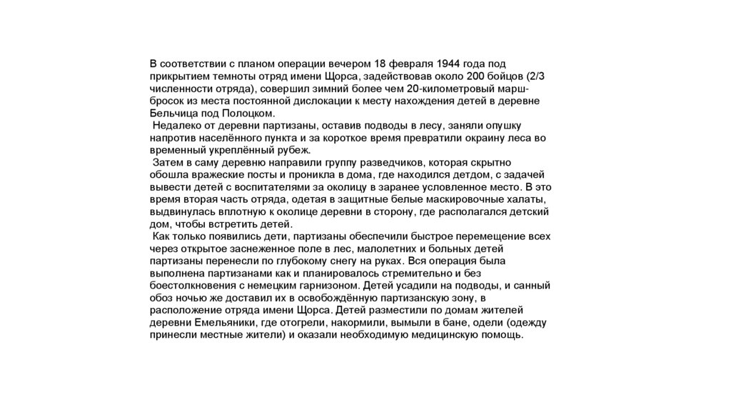 Операция звездочкаОсвобождение партизанами детей Полоцкого детского дома