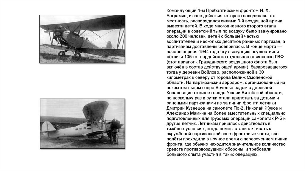 Эвакуация детей из партизанской зоны лётчиками за линию фронтаВесной 1944 года немецкое командование