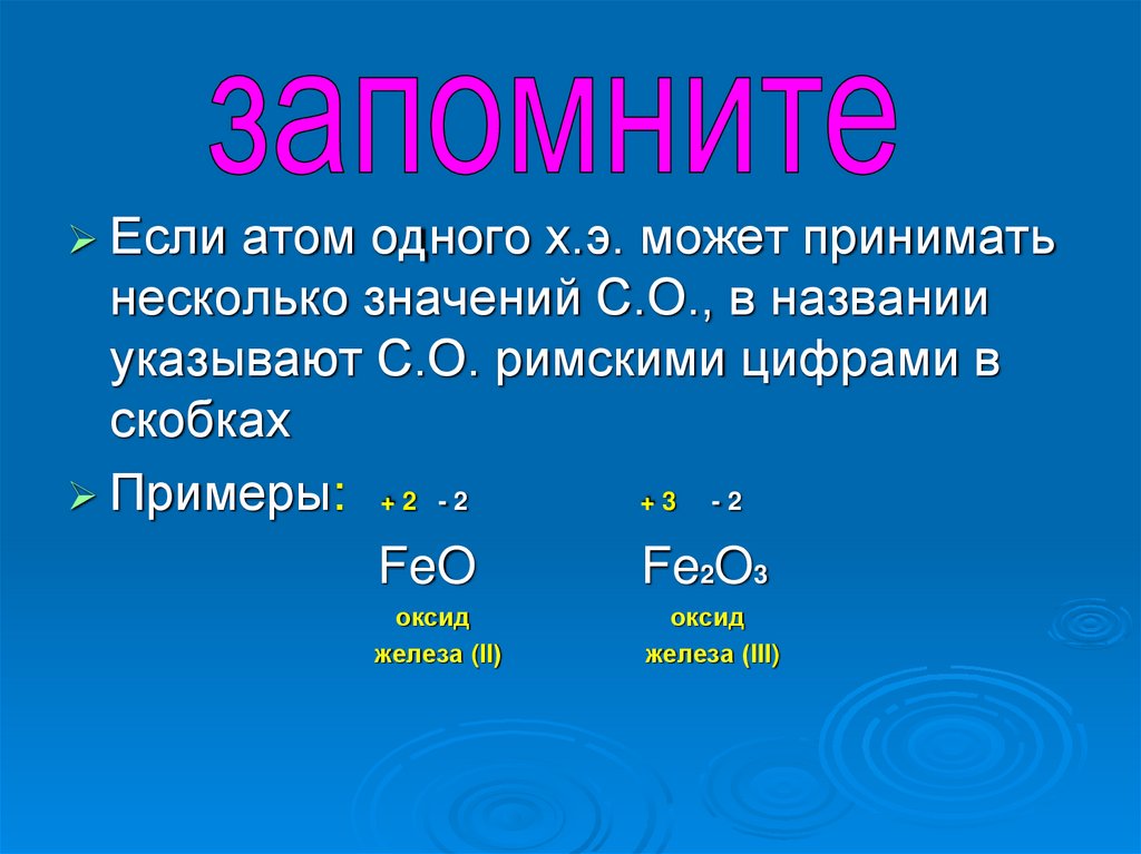 Если атом одного х.э. может приниматьнесколько значений С.О., в названии