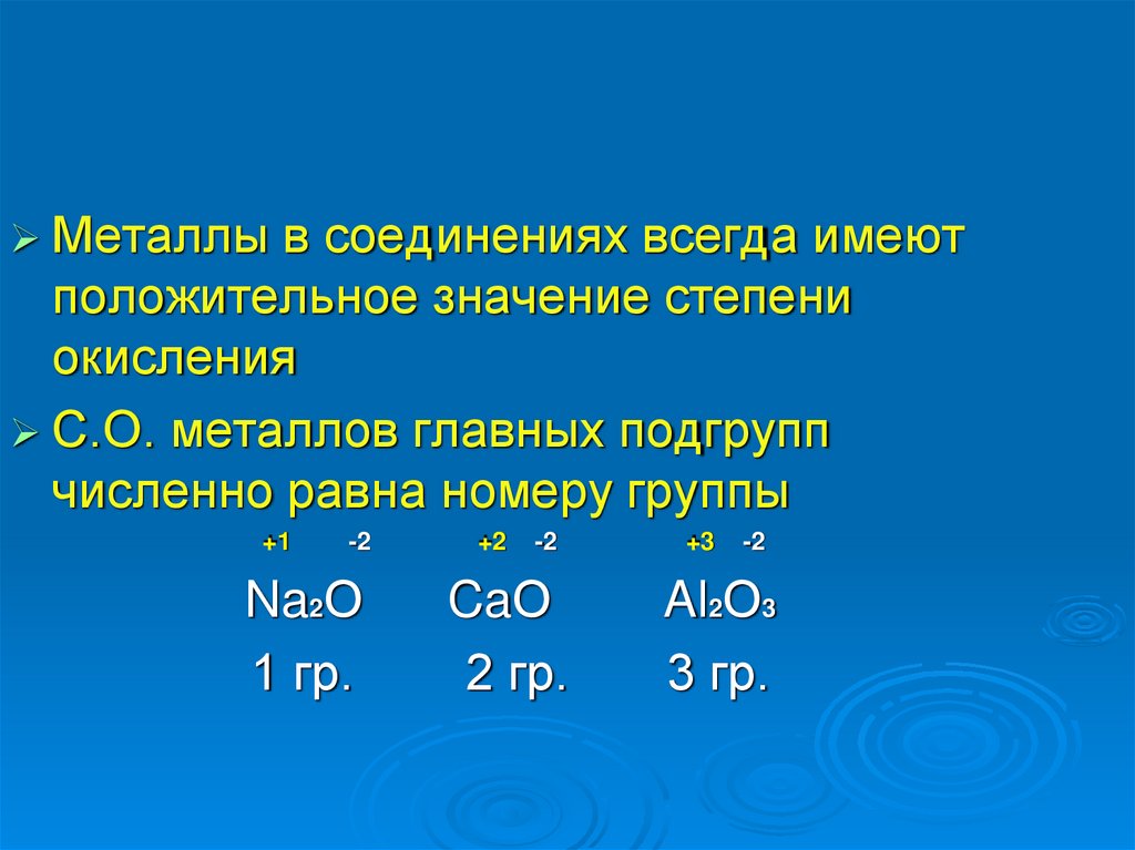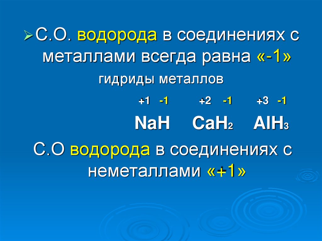 C.О. водорода в соединениях сметаллами всегда равна «-1»