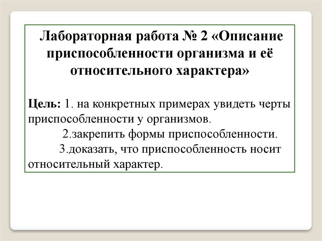 Лабораторная работа № 2 «Описаниеприспособленности организма и её