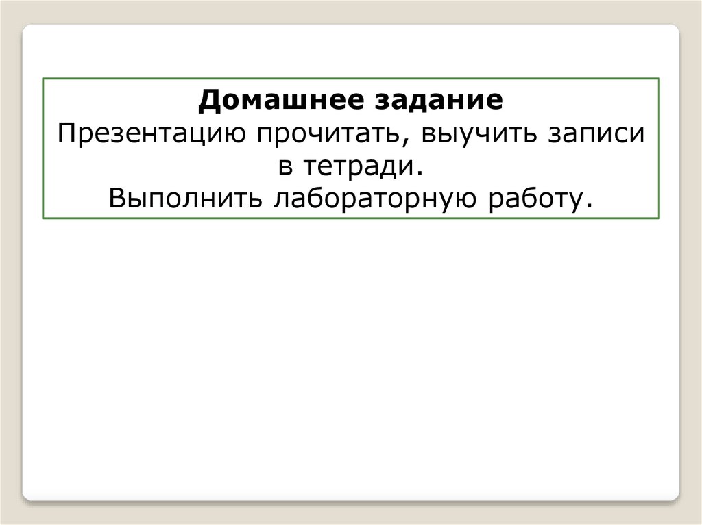 Домашнее заданиеПрезентацию прочитать, выучить записи
