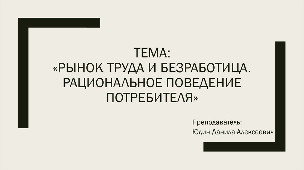 1. Тема: «Рынок труда и безработица. Рациональное поведение потребителя»