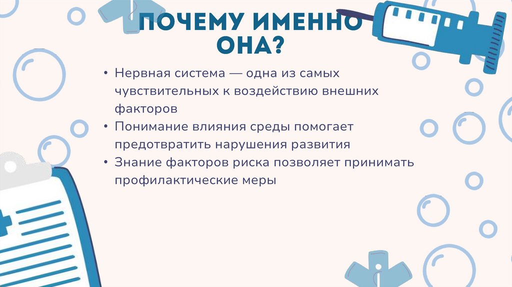 • Окружающая среда существенно влияетна развитие нервной системы