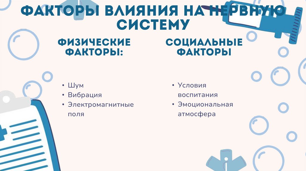 • Нервная система — одна из самыхчувствительных к воздействию внешних