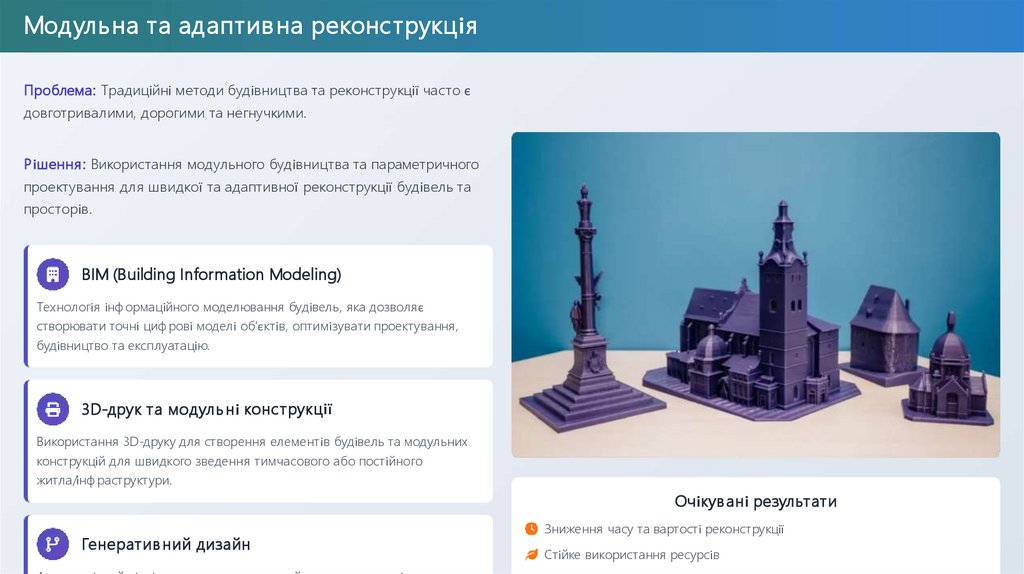 Модульна та адаптив на реконструкціяПроблема: Традиційні методи будівництва та реконструкції часто є