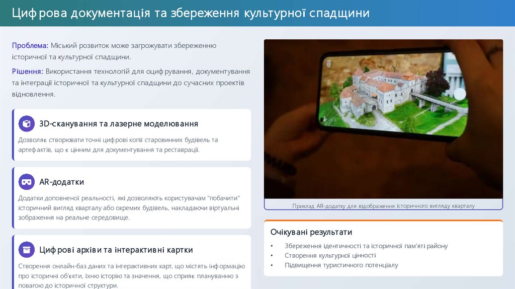 Циф рова документація та збереження культ урної спадщиниПроблема: Міський розвиток може загрожувати збереженню