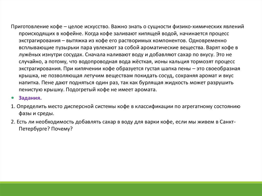 2. Есть ли необходимость добавлять сахар в воду для варки кофе, если мы живем в СанктПетербурге? Почему?