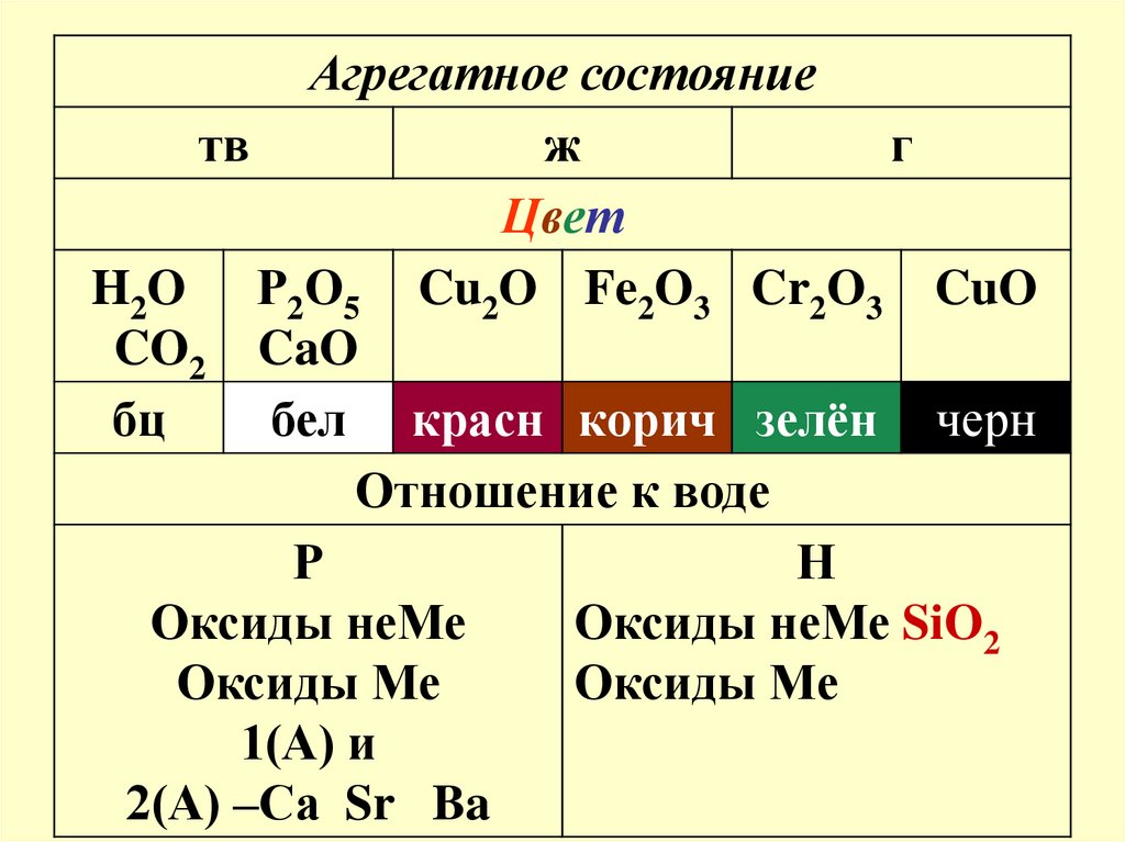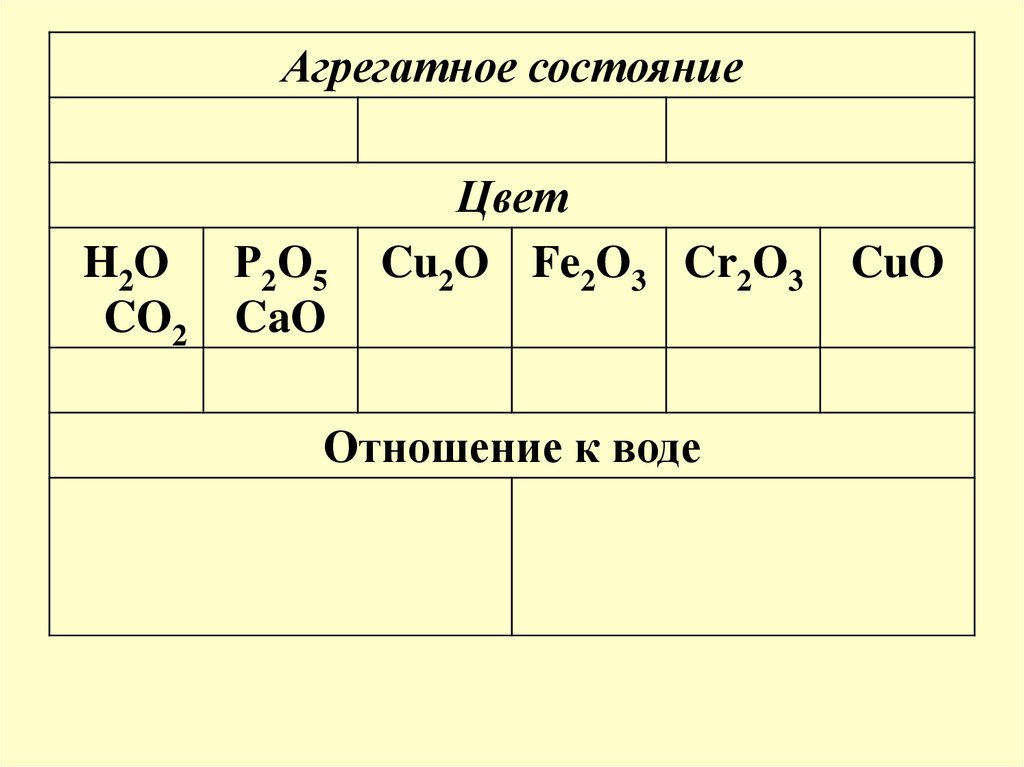 H2O Р2О5 Cu2O Fe2O3 Cr2O3 CuO