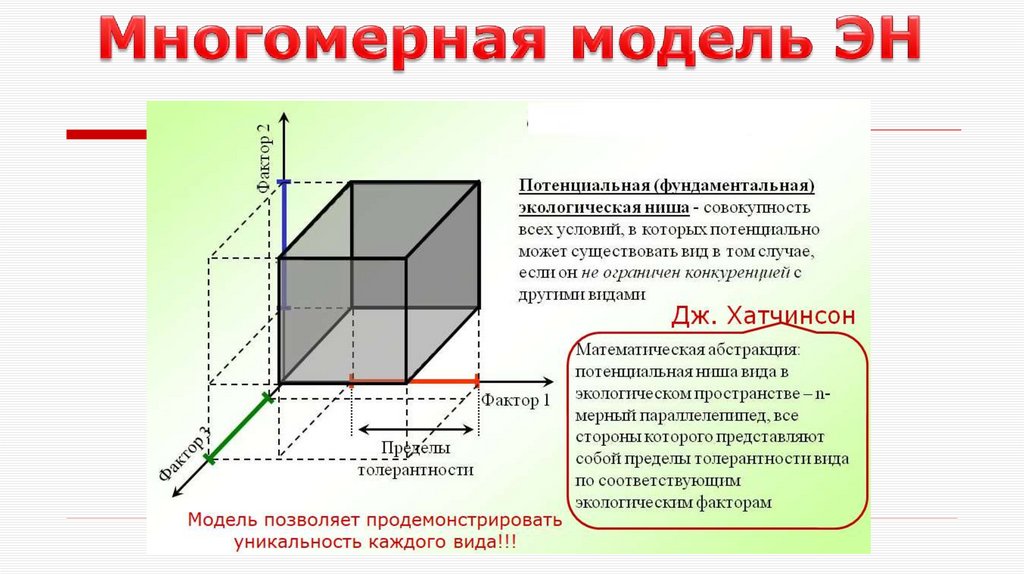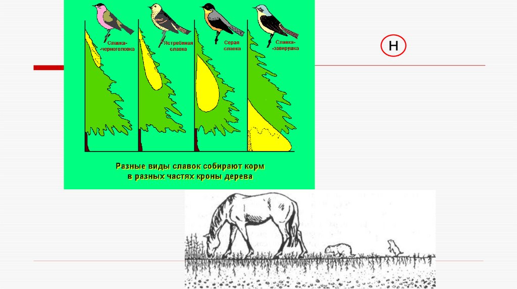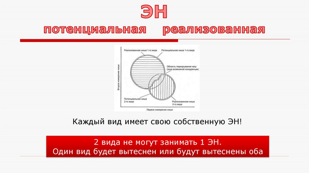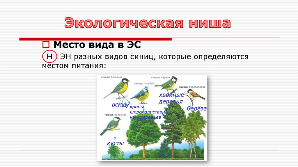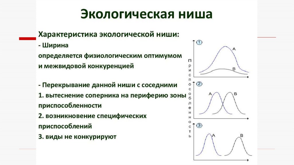 - каждый вид в природе занимает определеннуюэкологическую нишу.