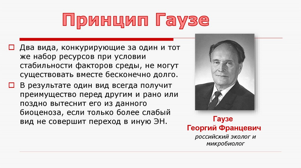 экологическая валентность. Принцип конкурентного исключения Г.Ф. Гаузе.