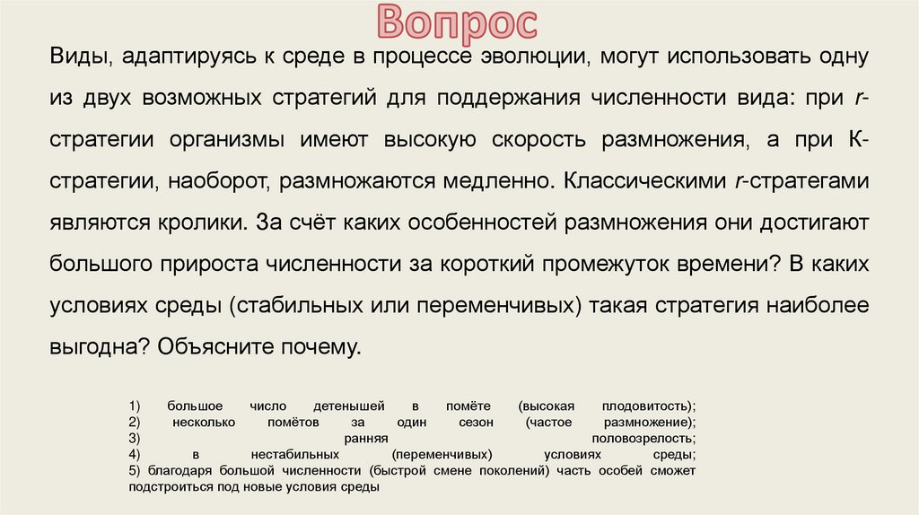 Популяция стабильна, если она имеет большую численность. Почемувероятность исчезновения малочисленных популяций выше, чем