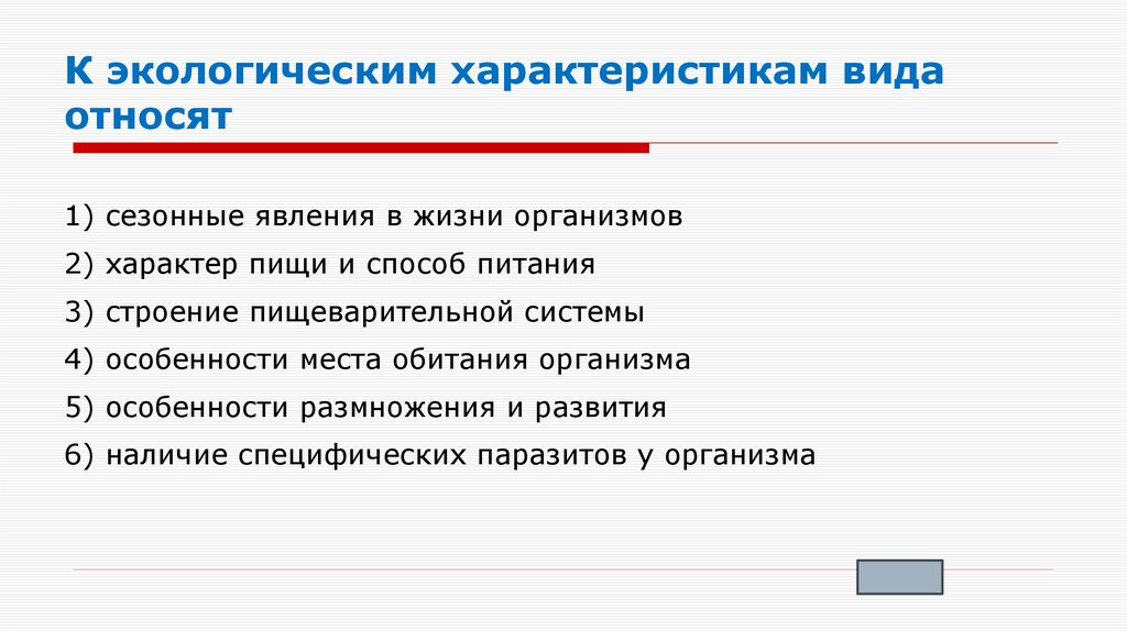 Структура вида. Экологические характеристики вида: экологическая ниша,