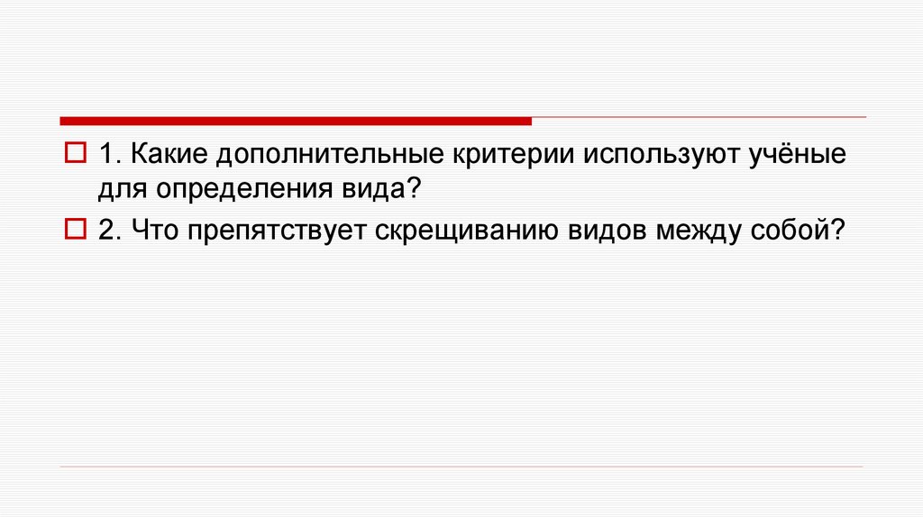 1. Какие дополнительные критерии используют учёныедля определения вида?