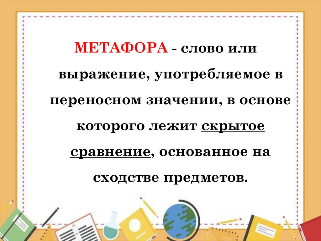 МЕТАФОРА - слово иливыражение, употребляемое в