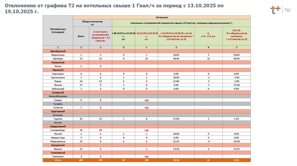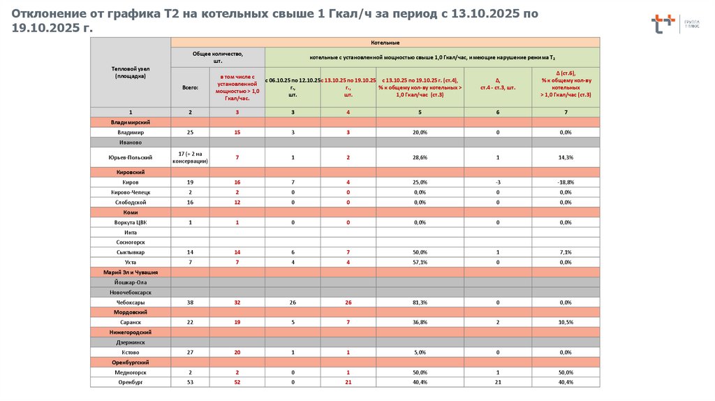 котельные с установленной мощностью свыше 1,0 Гкал/час, имеющие нарушение режима Т2